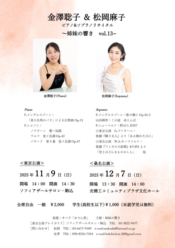 🎶 金澤聡子&松岡麻子 ピアノ&ソプラノリサイタル